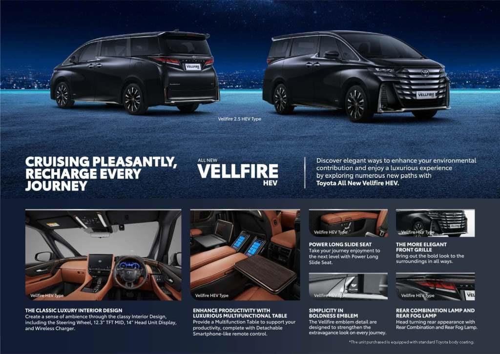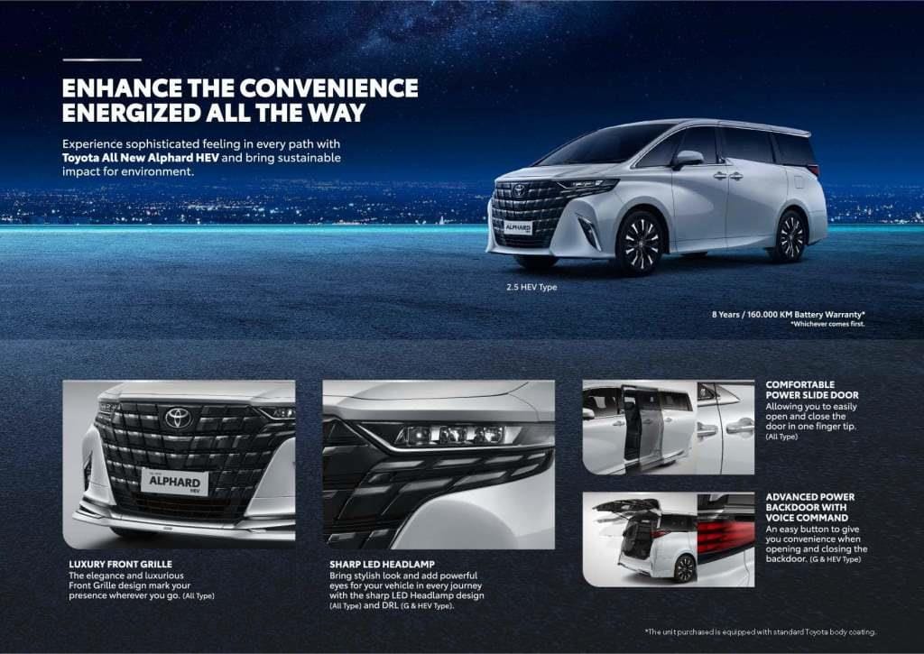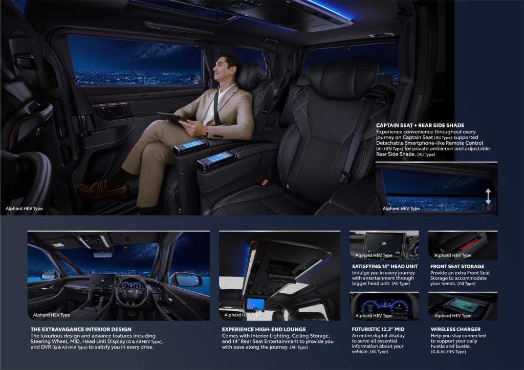 Sebagai benchmark, Toyota All New Alphard HEV ditargetkan untuk memberikan kenyamanan dan pengalaman berkendara yang high quality setara Premium Luxury Sedan, bahkan melampauinya dengan meningkatkan value yang hanya dimiliki oleh MPV mewah.