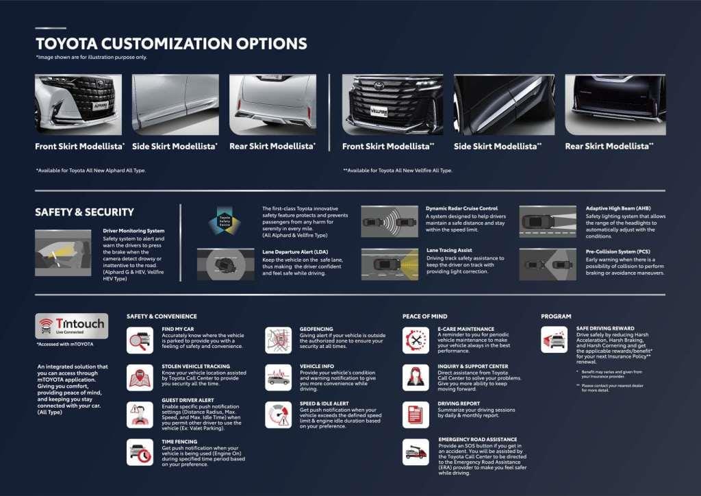 Dengan semangat continuous improvement, MPV premium generasi terbaru yang kini hadir lebih mewah dan semakin canggih. All New Alphard memperoleh begitu banyak sentuhan inovasi, MPV ini juga memperkuat positioning-nya di segmen luxury vehicle yang sangat eksklusif.