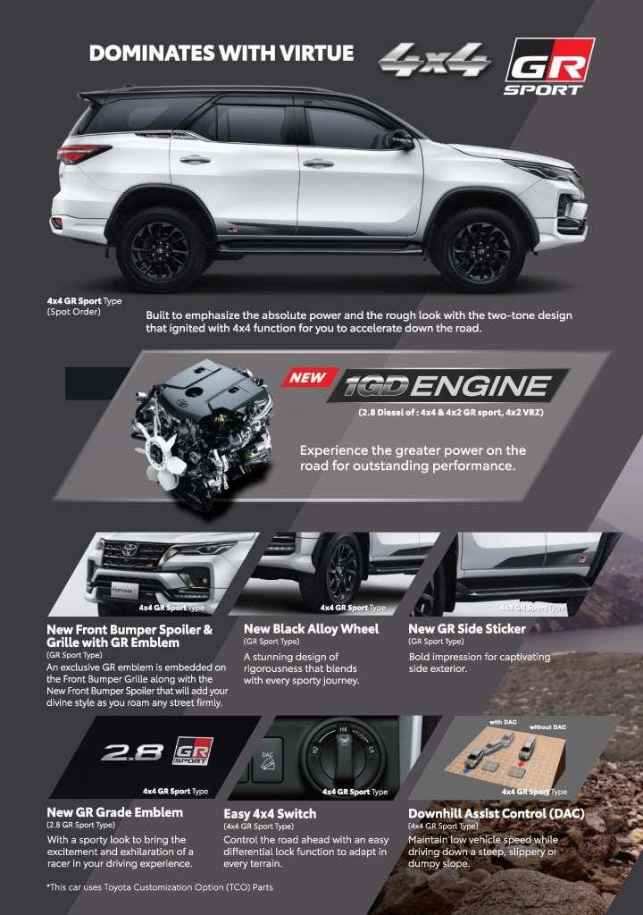| 2.8 VRZ WITH GR PARTS AERO PACKAGE TSS 4X2 A/T NON RSE | IDR 657.600.000 |