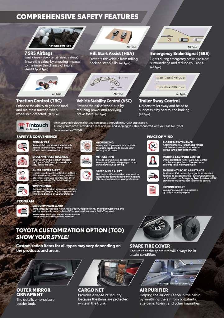 | 2.8 VRZ WITH GR PARTS AERO PACKAGE TSS 4X2 A/T ONE TONE (Premium Color) | IDR 666.200.000 |