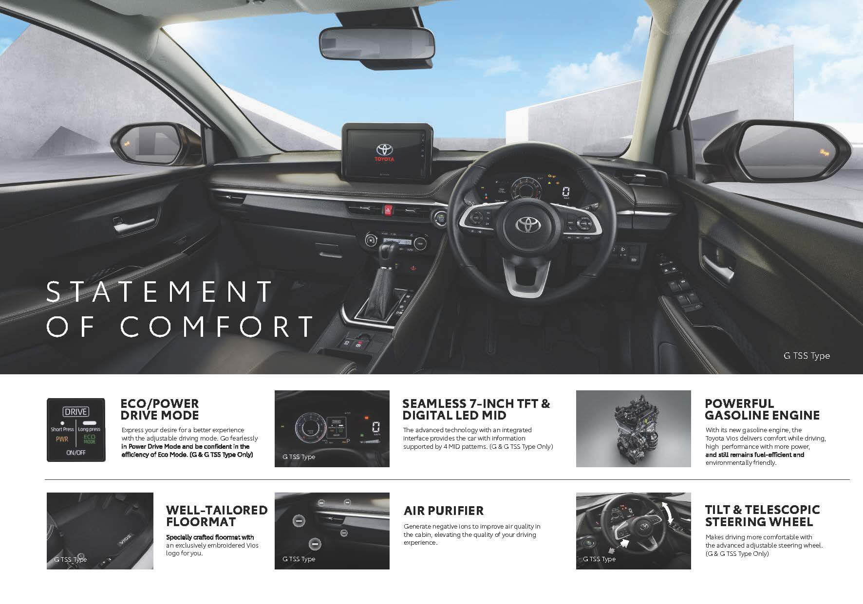 Pertama, Powerful yet elegant dashboard Design dengan waena black. Pada tipe G, terdapat pula pengaturan AC otomatis dengan tampilan digital.