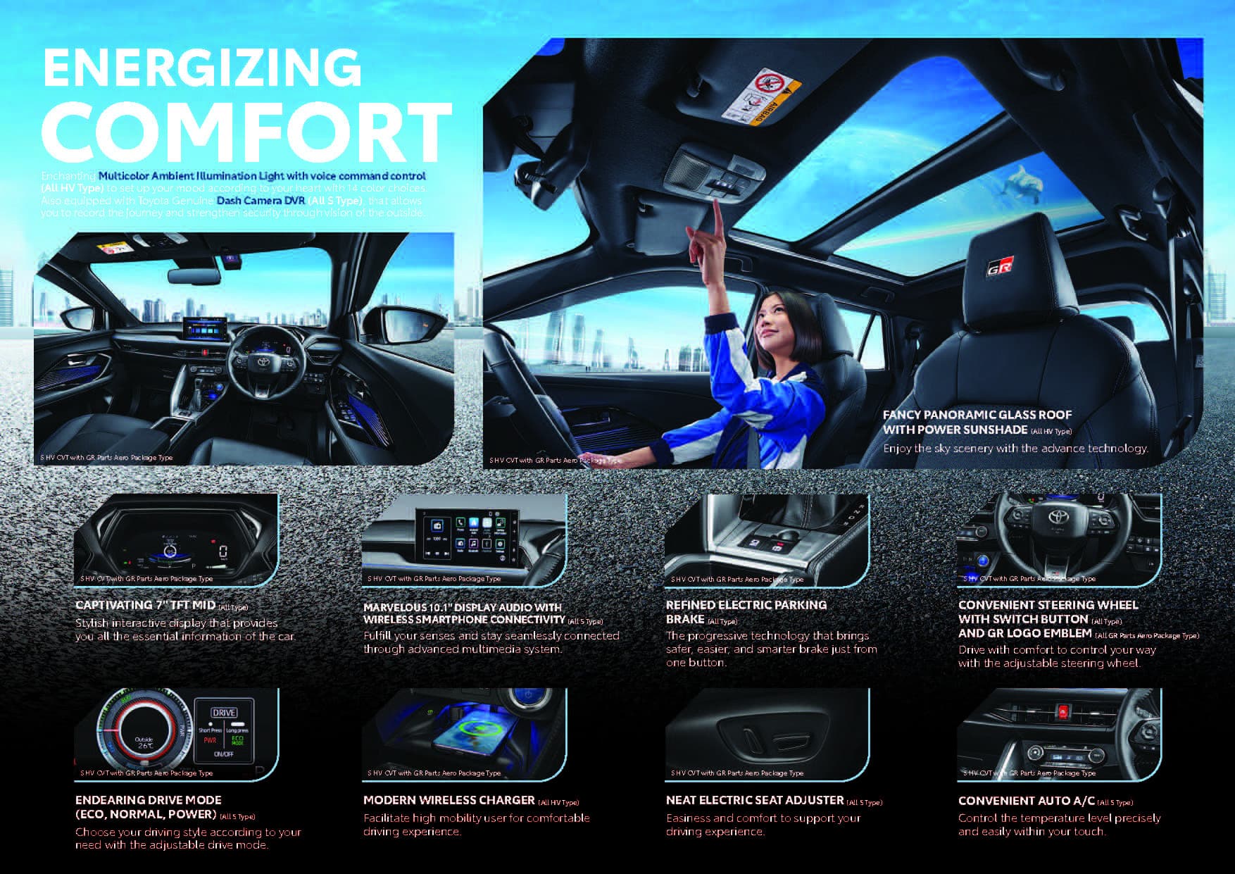 Tantang diri Anda untuk menjadi pusat perhatian, New Yaris Cross HEV hadir dengan tampilan memukau untuk menghidupkan setiap perjalanan Anda. Siapkan diri untuk perjalanan yang menggetarkan jiwa dan membangkitkan semangat. Siapkan tujuan dan capai impian Anda dengan penampilan mengagumkan.