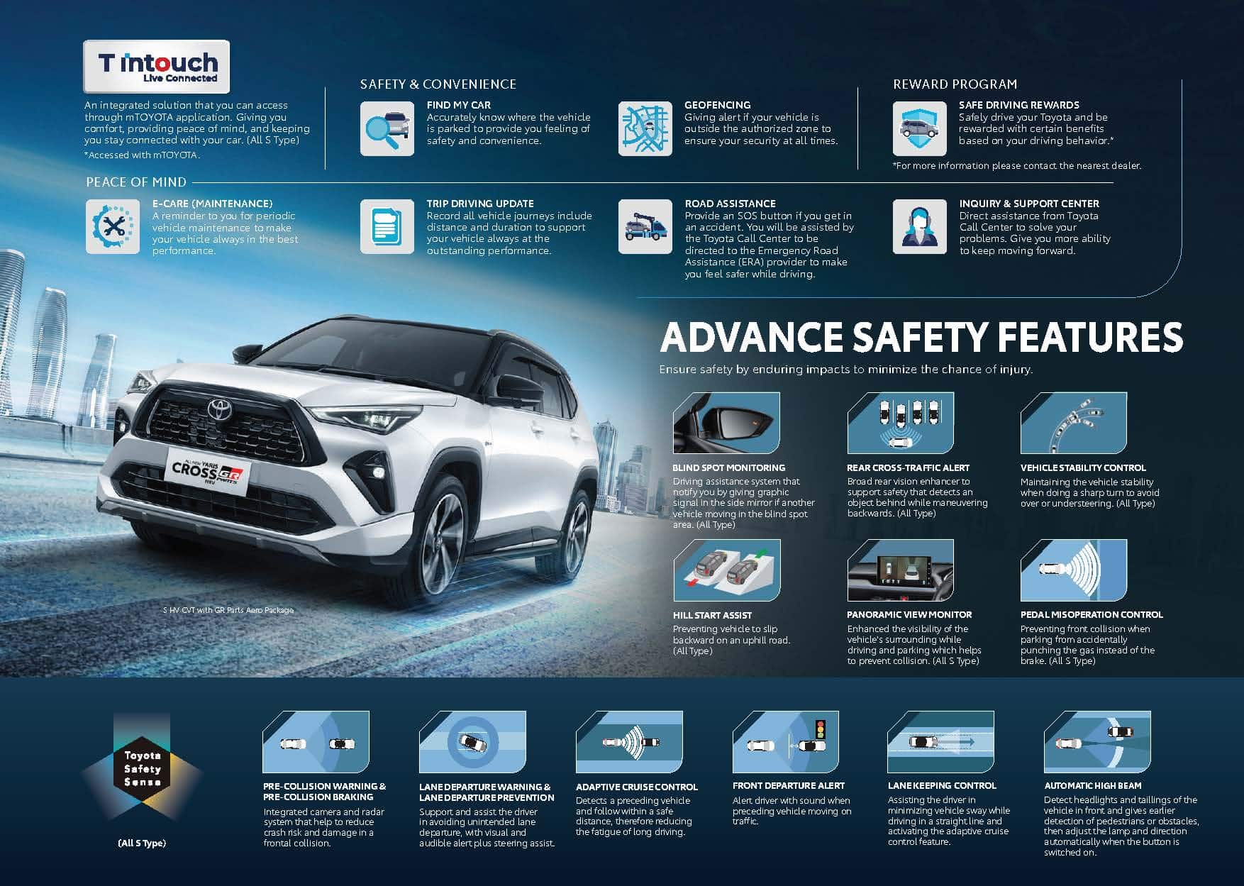 Sebagai kendaraan elektrifikasi pertama di segmen yang kini cukup luas peminatnya–Medium SUV. Dengan semangat Mobility for All, Urban SUV dengan style adventure kuat ini tidak hanya melengkapi line-up Hybrid EV Toyota di Indonesia, namun juga bertujuan untuk mempertahankan dominasi Toyota di pasar SUV Tanah Air dengan pilihan model yang semakin lengkap.